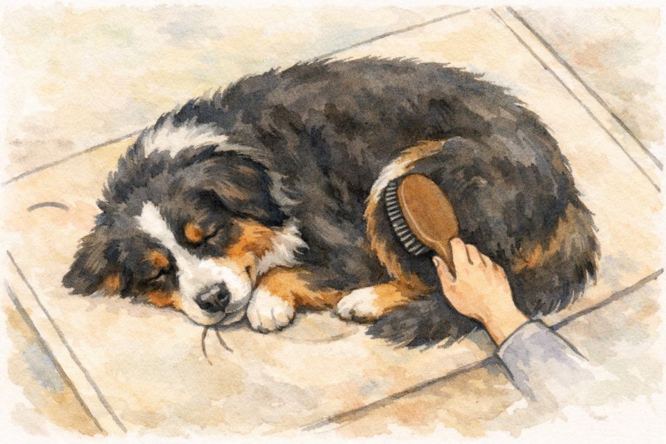 その後、ブラシで毛並みを整え、お湯で湿らせたガーゼややわらかい布で全身をやさしく拭いてあげてください。