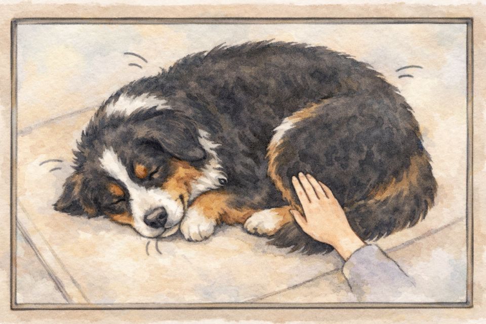 体の下にペットシートを敷き、やさしくクッションの上に寝かせてあげてください。亡くなってから2〜3時間ほどで死後硬直が始まるため、できるだけ早めに前脚と後ろ脚を自然な形にたたみましょう。